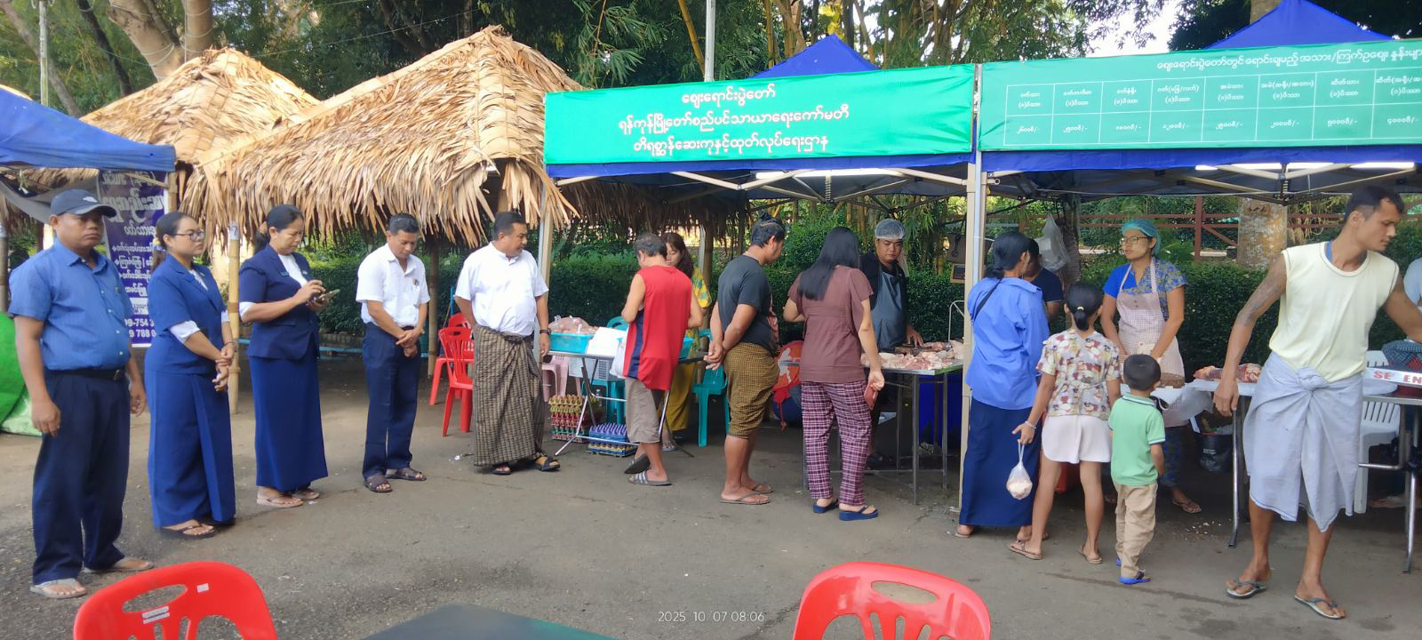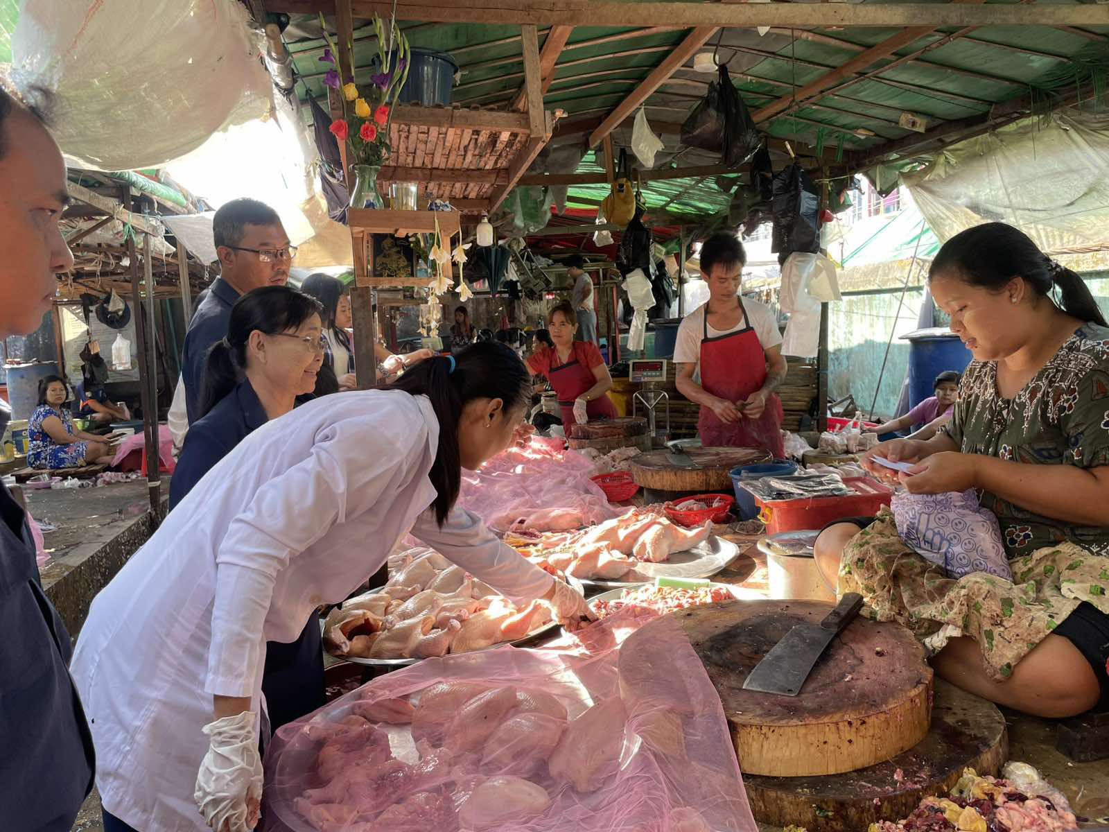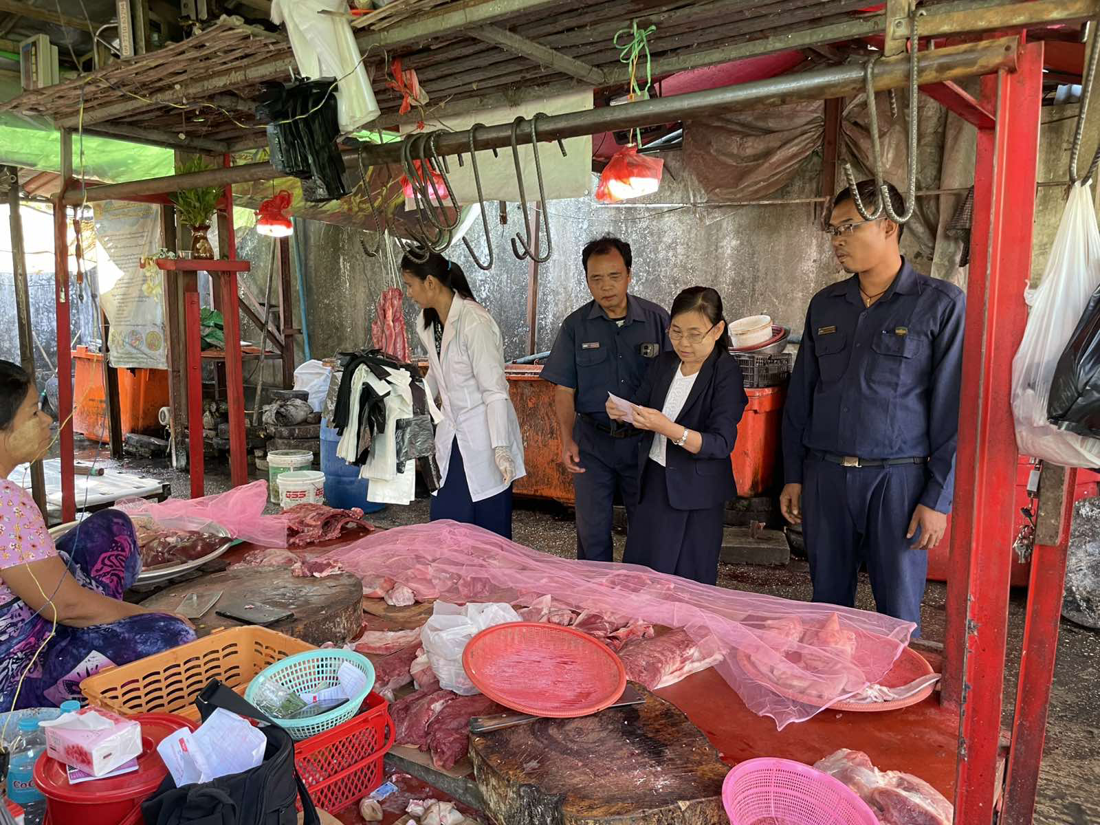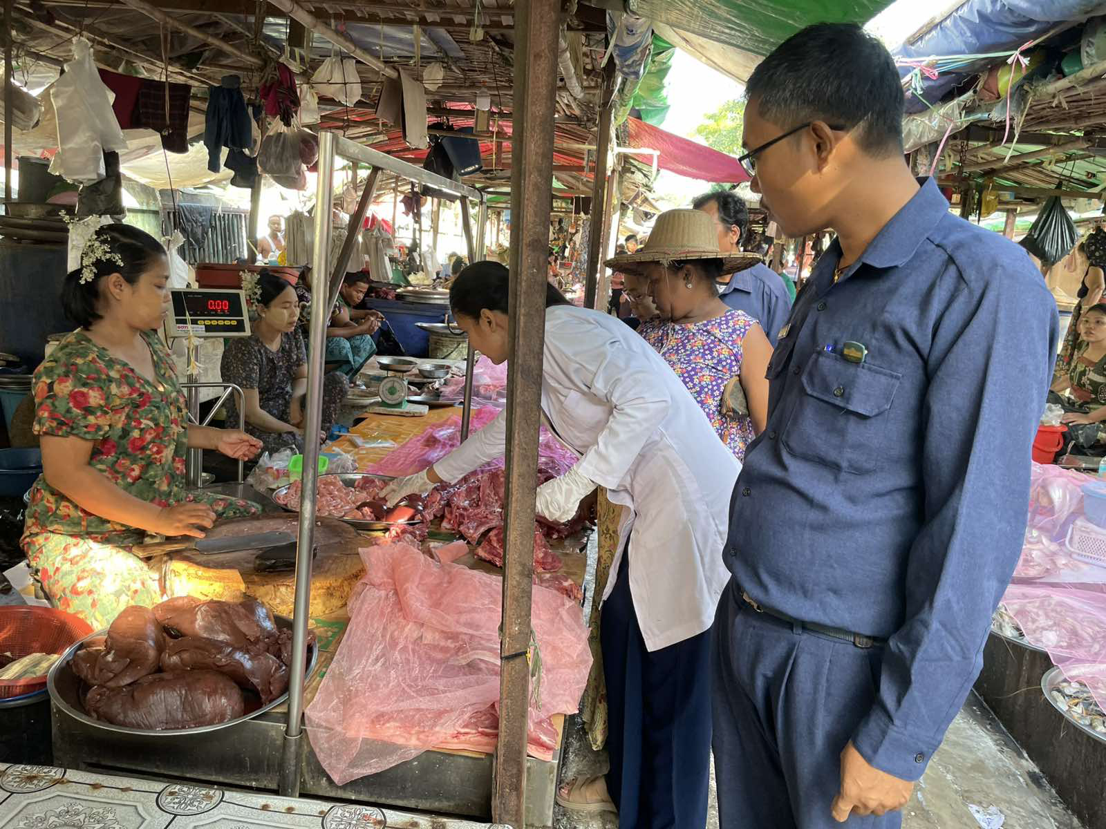 | ၂၉-၁၂-၂၀၂၅ ရက်နေ့ ကုသရေးနှင့်ကာကွယ်ရေးဌာနခွဲ(ကမာရွတ်ခရိုင်)ရုံးရှိ ခရိုင်တာဝန်ခံအရာရှိဦးဆောင်၍ ဒုတိရစ္ဆာန်ဆေးကုမှူး Dr.ဝင့်သင်ဇာငြိမ်းနှင့်အဖွဲ့ဝင်(၂)ဦး၊ ဈေးတာဝန်ခံနှင့်ပူးပေါင်းအဖွဲ့စုံသည် မရမ်းကုန်းခရိုင်၊မရမ်းကုန်းမြို့နယ်၊ သမိုင်းဘူတာ စျေးအတွင်းရောင်းချလျက်ရှိသော အသား၊ငါးပုဇွန်များ သန့်ရှင်းလတ်ဆတ်မှုရှိ၊မရှိ၊ တရားဝင်အသားနှင့်တရားမဝင်အသားများရောနှောရောင်းချခြင်းရှိ/မရှိ၊ ထုတ်လုပ်ရုံများတွင် စစ်ဆေးခွင့်ပြုသည့်ဆေးစွဲထားသောအသားများဟုတ်၊မဟုတ်၊ ရောင်းချနေသော အသား၊ငါး၊ပုဇွန်များ၏အရည်အသွေး၊ ထုတ်လုပ်သူလိုင်စင်စီများ၏အသားပြေစာများဖြင့် စစ်ဆေးဆောင်ရွက်ခဲ့ပါသည်။ |