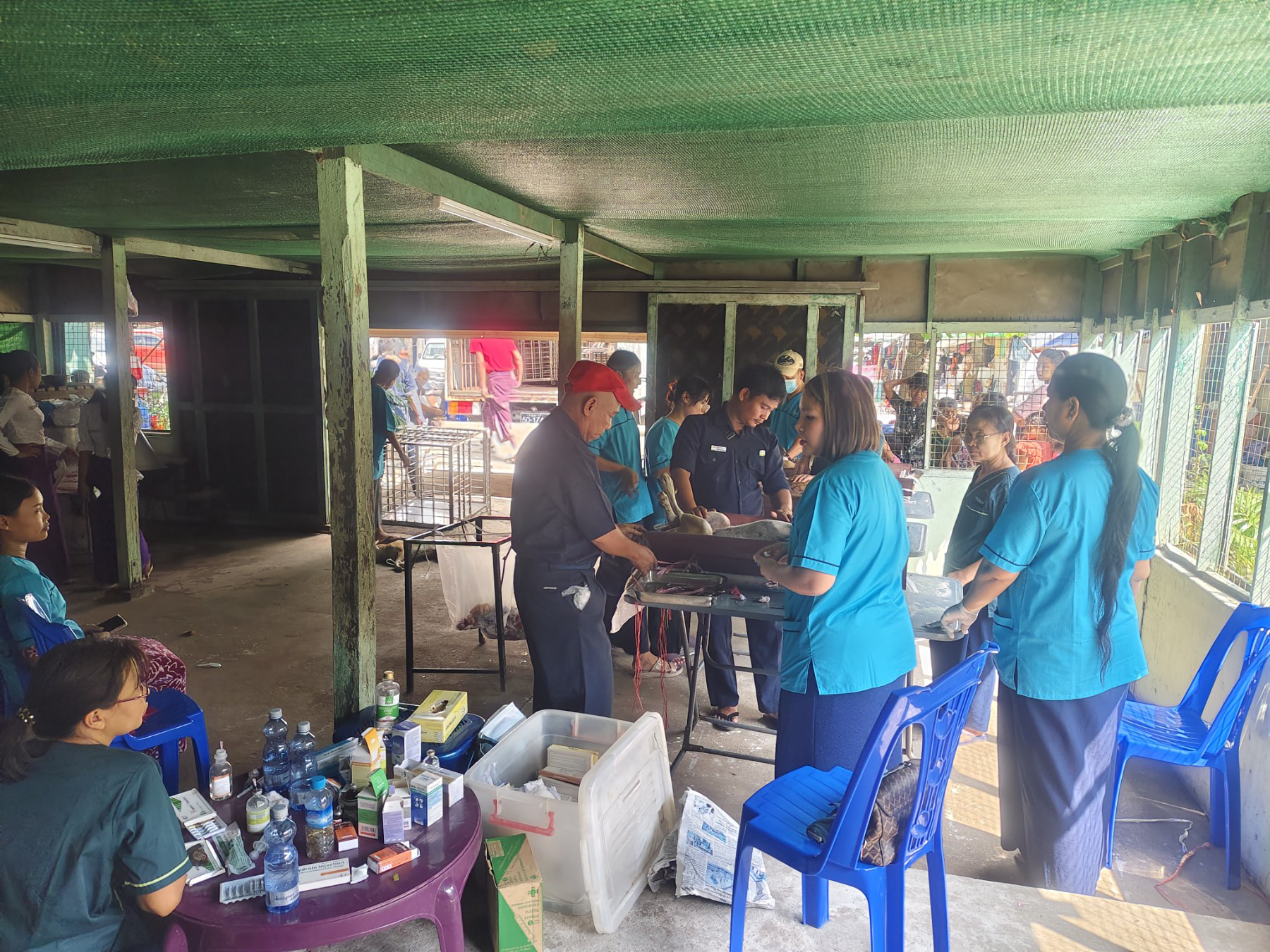 | ၂၂-၁၀-၂၀၂၅ ရက်နေ့ ကုသရေးနှင့်ကာကွယ်ရေးဌာနခွဲ(ဗိုလ်တထောင်ခရိုင်)၊ သာကေတမြို့နယ်၊ (၉)ရပ်ကွက်၊ နဝရတ်ပတ်လမ်း၊ မဟာဂန္ဓာရုံဘုန်းတော်ကြီးသင်ပညာရေးကျောင်းဝင်းအတွင်း/အပြင်ရှိ လေလွင့်ခွေးများအား ဌာနမှူး၊ ဒုတိယဌာနမှူး ဦးဆောင်၍ လက်ထောက်ဌာနမှူးအပါအဝင် တိကုဆရာဝန်များ၊ အရာထမ်း/အမှုထမ်းများ၊ မြို့နယ်စည်ပင်ရုံးမှဝန်ထမ်းများ၊ ကျောင်းဝင်းအတွင်းရှိ တာဝန်ရှိသူများနှင့်ပူးပေါင်း၍ လူအင်အား(၂၉)ဦးခန့်ပါဝင်ပြီး တိကုဆရာဝန်များမှ လေလွင့်ခွေးများမျိုးပွားထိန်းချုပ်ခွဲစိတ်ကုသခဲ့ရာ ခွေးထီး (၂၅)ကောင်ဖြစ်ပြီး ခွေး အမ(၁၇)ကောင်ကို မေ့ဆေးပစ်ဖမ်းဆီးခဲ့ရာ စုစုပေါင်း(၄၂)ကောင်အနက် ဌာနပိုင်ခွေးဂေဟာသို့ (၁၉)ကောင်ပို့ဆောင်၍ ထိန်းသိမ်းစောင့်ရှောက်ခဲ့ပါသည်။ |