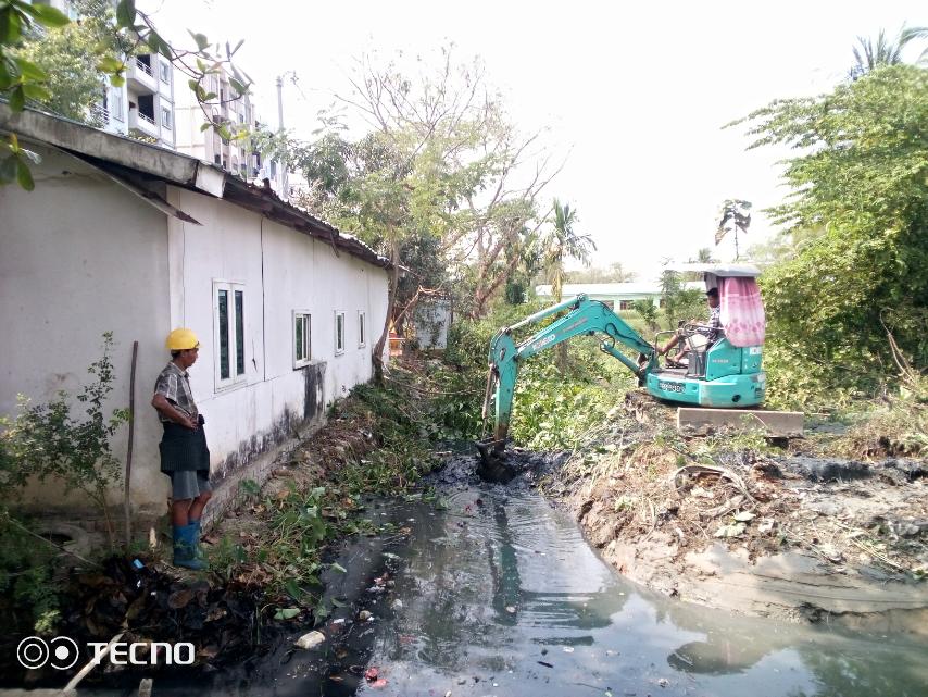 ဒဂုံမြို့သစ်(မြောက်ပိုင်း)မြို့နယ်၊ စည်ပင်သာယာရုံးရှေ့ ရေမြောင်းရှင်းလင်းခြင်း(ဆောင်ရွက်ဆဲ) |